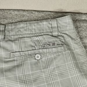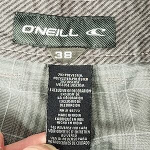 O'Neill Hybrid Board Shorts Men 38 Gray Plaid Flat Front Wicking Swim Beach 11"
