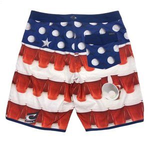 ONeill Hyperfreak Beer Pong Board Shorts 33 Swim Trunks Bathing Suit USA Flag