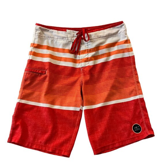 O’Neill Hyperfreak Boardshorts Size 31 Trunks Colorblock Stripe Stretch Red