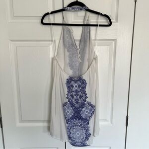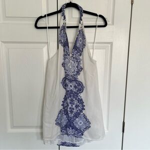 O'Neill Journey Blue and Ivory Print Halter Dress Size M