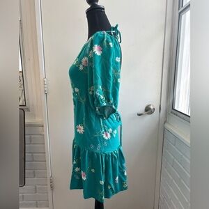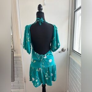 O’Neill Juniors Alta Dress in turquoise. Mini dress with open back. Size large
