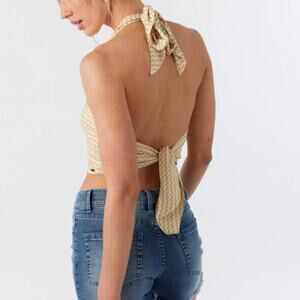 O'Neill Kennie Pale Yellow Retro Squiggly Line Print Crop Halter Top Large G3293