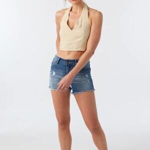 O'Neill Kennie Pale Yellow Retro Squiggly Line Print Crop Halter Top Large