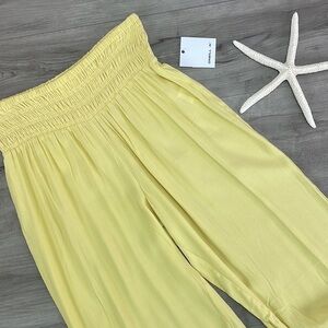 Cute and casual woven pants that have a comfortable, flowy fit design and smocked elastic waistband.