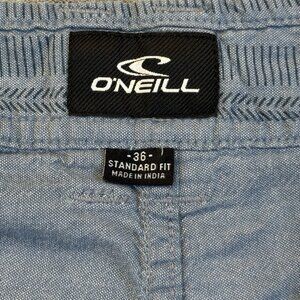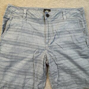 O'Neill Mens 36 Chino Shorts Light Blue Flat Front Striped Cotton Standard Fit
