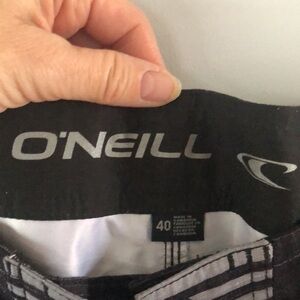 O’Neill Boardshorts Gray and Black Strips Size 40 Pocket Beach Swim Trunks Summer Beach Vacation Cruise Travel Casual Quick Dry