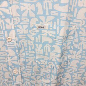 For sale is a brand new with tags O'Neill O'riginals men's shirt in size large. This stylish blue patterned shirt features a unique design, perfect for casual wear. Approximate measurements: 44" chest, 31" length, 16" pit to hem.