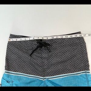 O'Neill Men’s Size 31 Board Shorts Swim Trunks Blue/Black Dots/Stripes.