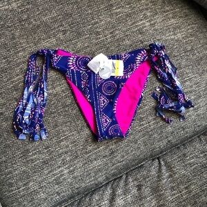 Sexy bikini bottom. It’s flirty with the tassel tie sides. Sold out in stores. This is from the 2015 collection. Would look awesome with a pink, white, black, or purple solid top.