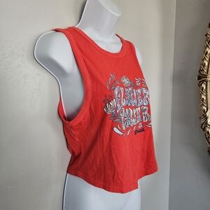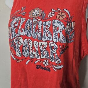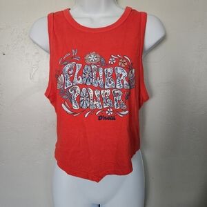 O'Neill NWOT Women's Medium Coral Tank Crop Top Flower Power Open Back Groovy