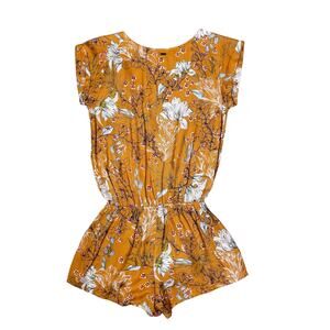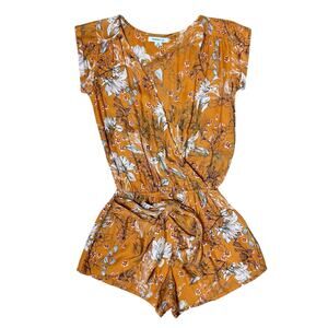 O’Neill Pilot Golden Yellow Floral V-neck Surplice Front Tie Romper