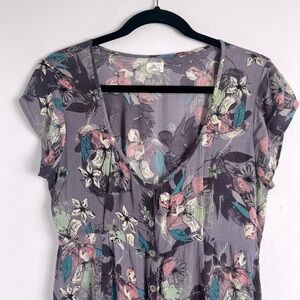 O'Neill Purple Mauve Floral Print Beachy Button Front Tie Back Maxi Dress Sz S