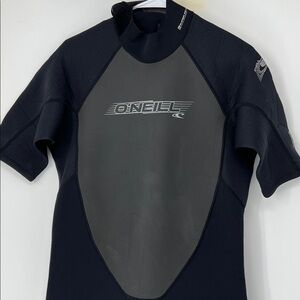 O'Neill Reactor-2 2mm Back Zip Spring Shorty men’s wet suit men’s size XL gray and black. Some marks throughout, minor. Pit to pit 19 inches Inseam 12 inches
