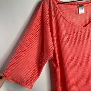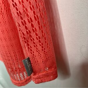 O Neill laser cut swim coverup long tunic top. Size XL. Coral salmon pink color. 1/4 sleeves. Good preowned condition.