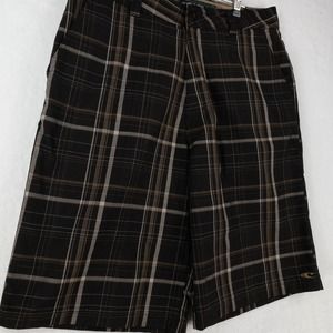 O'Neill Shorts Men's 31 Brown Plaid 11 Inch Inseam Flat Front