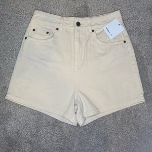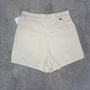 These high-waisted cream shorts from O'Neill offer a relaxed fit and a minimalist design, making them a versatile addition to your summer wardrobe. The light neutral color and slightly frayed hem add a touch of casual elegance, perfect for any laid-back occasion.