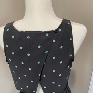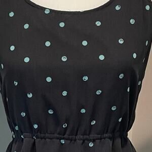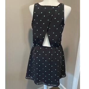 O’Neill Skater Mini Dress Sz L Crossover Back Cut Out Sleeveless Polka Dots Blue