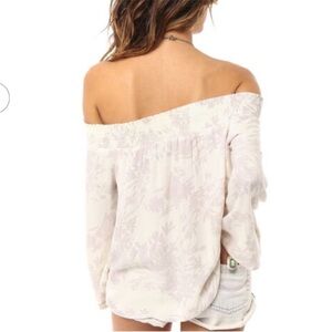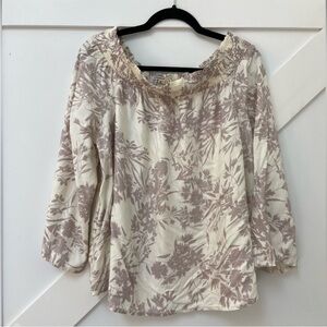 This relaxed blouse by O'Neill features a smocked off the shoulder design in a soothing cream and gray floral palette. The flowy and soft fabric make it a perfect choice for a casual day out. Made of 100% viscose. In like new condition.