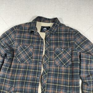 O'Neill Standard Fit Sherpa Lined Plaid Flannel Jacket Shirt Mens M Green Brown