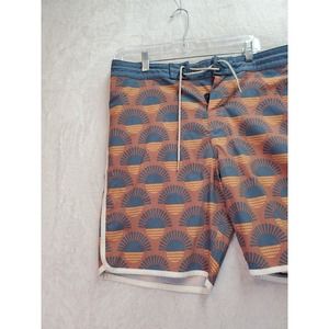 O'NEILL SWIM SHORTS MENS SIZE 34 MULTI GEO PRINT POLYESTER POCKETS DRAWSTRING