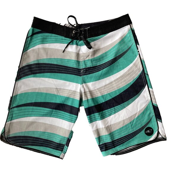 O'Neill Swim Trunks Adult 30 Green Black Striped Mens Bathing Suit Board Shorts