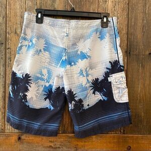O’Neill Sz 5 Youth Blue Tropical Palm Trees Summer Surf Board Swim Short