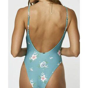 ONeill Sz XL One Piece Floral Swimsuit Green Bathing Suit NWT