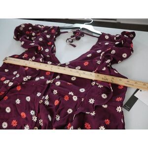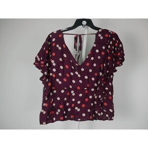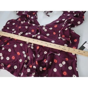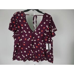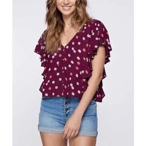 O'Neill | Wine Floral Maggy Flutter-Sleeve Button-Up Top L