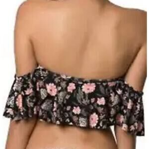 A printed bandeau top with removable neck ties and cups for support, the women's O'Neill Colleen Flounce top is perfect for enjoying the sun at the beach, pool or in your own backyard.