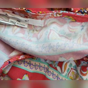 Easy and stylish. This is a woven tank romper that has a colorful print design and adjustable over the shoulder straps. Romper features a 2” inseam, allover print, front tie detail, strap adjusters, and 100% viscose.