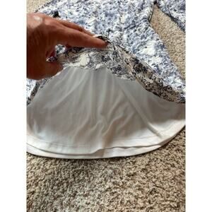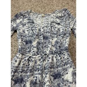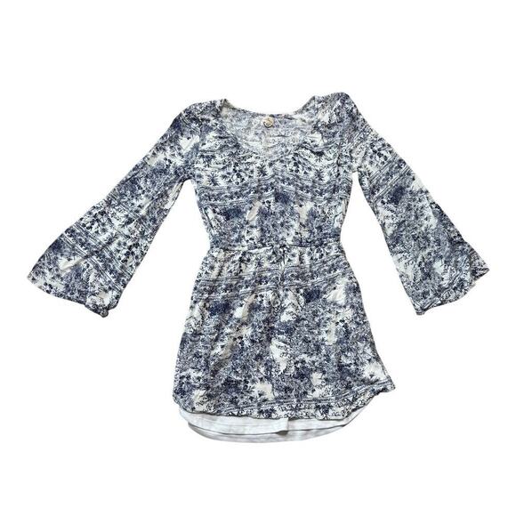 Adorable O'Neill Women's 3/4 sleeve mini Dress, Bell sleeves; size women's Medium Blue floral/tropical. Print. Elastic scooped neckline;