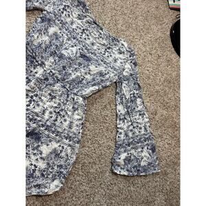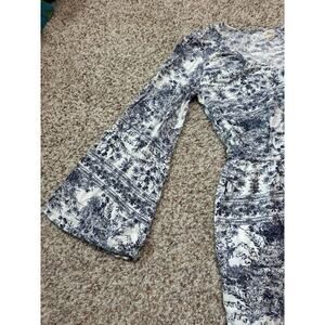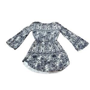 O'Neill Women's Mini Dress, Bell sleeves; women's Medium Blue floral/tropical