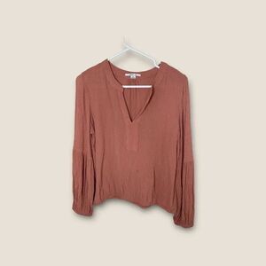 Sweet and easy, this blousy split-collar top is styled with tonal clip dots and perfectly billowed sleeves.