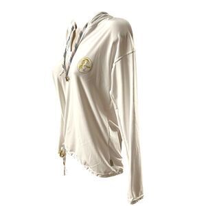 O’Neill ~ Women’s White Long Sleeved Top ~ Loose Fit ~Contrasting tie and hoodie