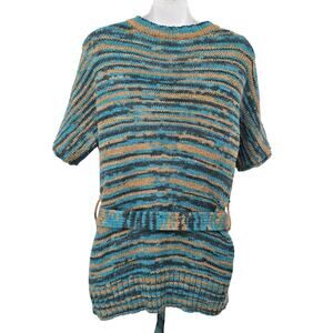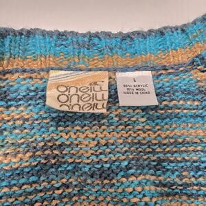 O’Neill Women's Wrap Blue Print Marled Crochet Open Front Cardigan w Tie Large