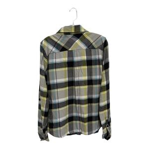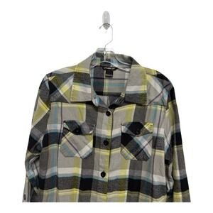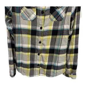 O'Neill Women's Yellow Gray 100% cotton button up flannel long sleeve shirt XL