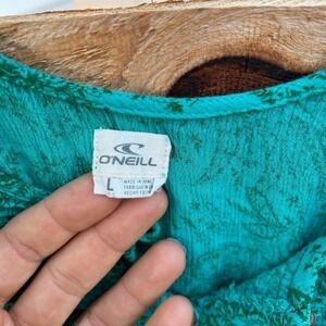 O'Neill girls shorts romper with pockets and adjustable straps. Sz L. Three wooden buttons at the top. Cute fabric detailing across the chest. Flowy fabric.