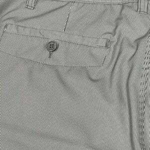 Excellent, preowned condition, hybrid, swim, short, and flat front short. They are a very subtle pinstripe in gray.