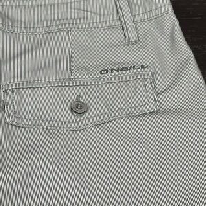 O’Neill hybrid, swim trunk flat front shorts subtle pinstripe gray 34