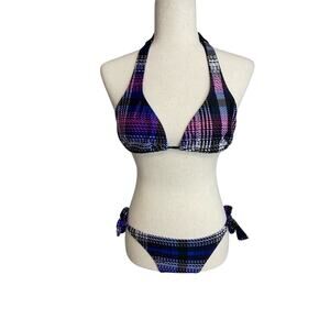 O'Neill two piece plaid tie bikini set triangle tie top bikini style tie bottom