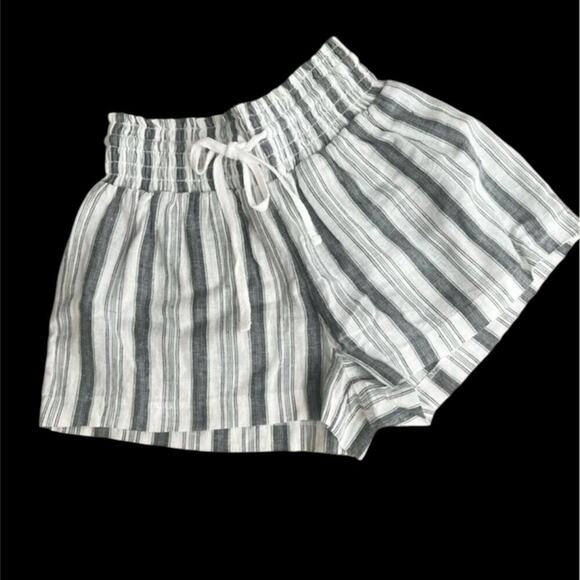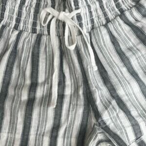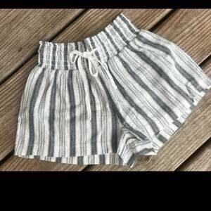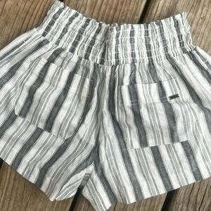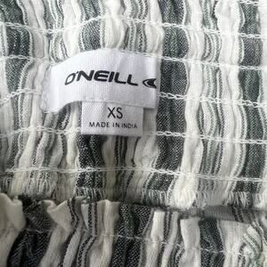 O’NEILL women’s size XS striped shorts. Elastic waistband with a drawstring, two back pockets. White with green and charcoal striping.