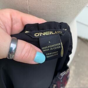 O’Neill wrap front toe waist boho Aztec southwestern tribal patterned slinky dress. Perfect to throw over a swimsuit after a day at the pool or beach and look chic.
