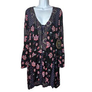 O'Neill x Anna Sui Dottie Floral Lace-up V-Neck Pleated Dress Sz M (1344)
