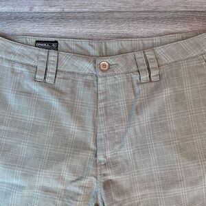 O'Neill Men's Green Plaid Flat Front Relaxed Fit Bermuda Short Size 34