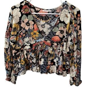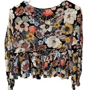 This O'Neill blouse features a relaxed, cropped fit with flutter sleeves and a charming pink and blue color palette. The ruffled details add a touch of elegance, making it perfect for casual outings or warm weather days. Like brand new