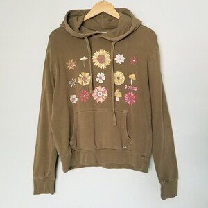 O'Niell Offshore Cotton Fleece Graphic Hoodie M Olive Green Mushroom Flower Boho