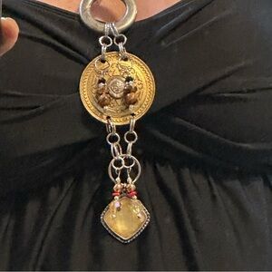 OOAK Assemblage Art Gold & Silver Medallion Pedant Necklace Handmade Steampunk