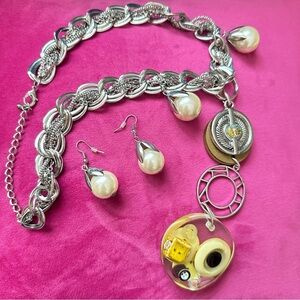OOAK Assemblage Art Jewelry Steampunk Necklace Set Pendant Handmade Resin Dangle