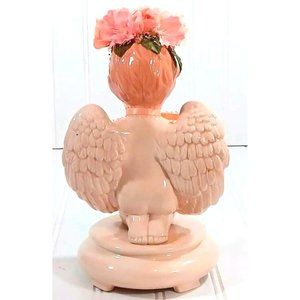 She has been affixed to a pedestal , painted in heartwarming colors. She has the most gorgeous face and looks like a precious baby. A peach bow and carnation were added atop of her gorgeous hand painted hair.