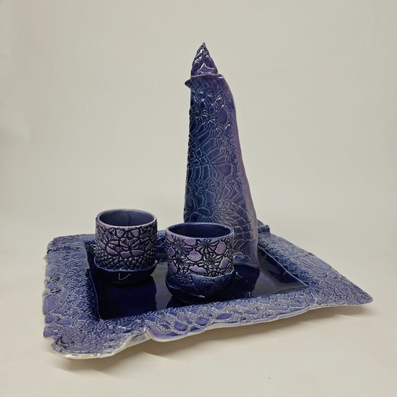 Studio Pottery Sake Set by Oregon Artist Dorothy Steele, Signed